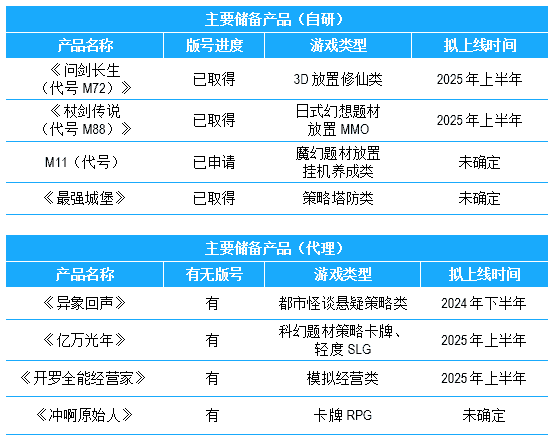 公司储备多款新品,,,,期待为玩家解锁更多新鲜体验,,部分产品如下表所示:::