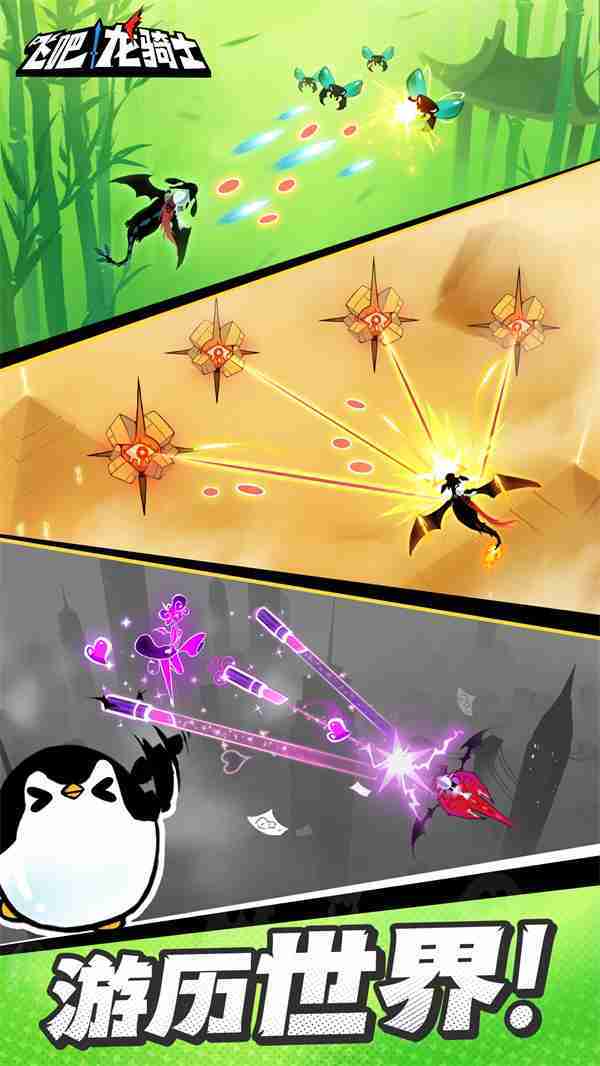 《飞吧龙骑士》是一款集合了飞行弹幕射击、、、Roguelike要素和挂机养成的休闲手游,,,极具创意的吞食子弹反击玩法,,,突破传统飞行射击的刻板限制,,带来了独特的爽快清屏体验。。。。